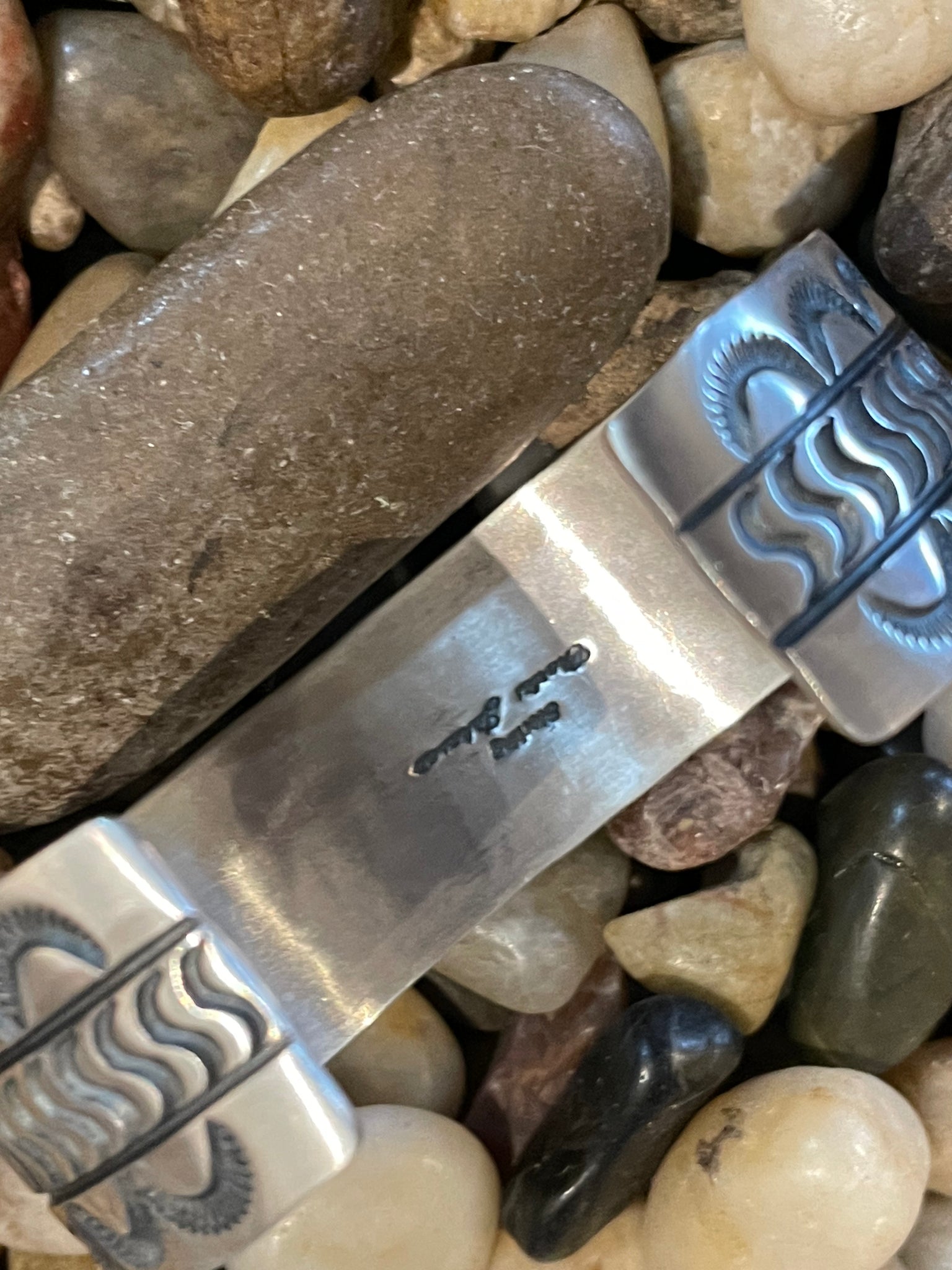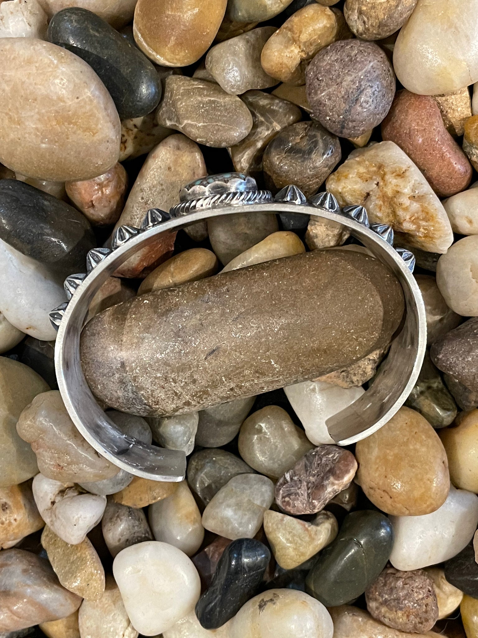 Egyptian turquoise stone set in stamped Sterling silver cuff