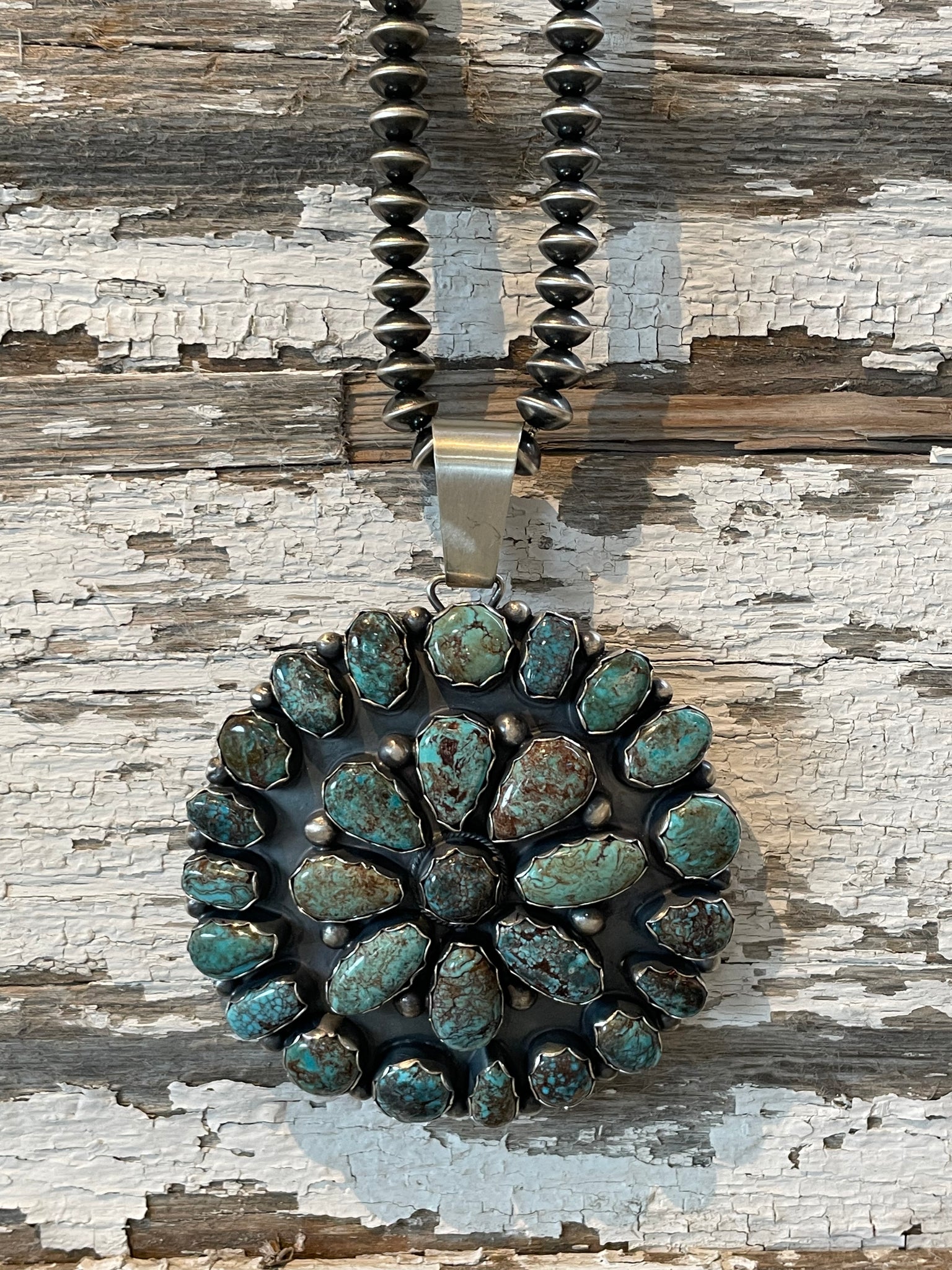 Egyptian Turquoise beautifully set in 3” round Sterling Silver Pendant