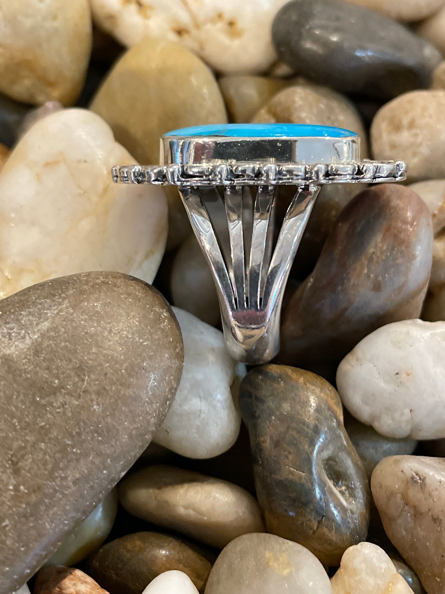 Waterweb Turquoise Stone set in Sterling Silver split band